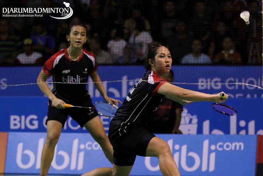Febriana Dwipuji Kusuma/Ribka Sugiarto (Indonesia) Mengembalikan Shuttlecock