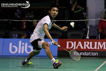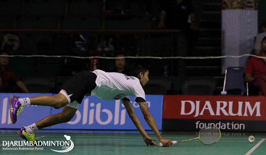 Muhammad Febriansyah (Indonesia) Berusaha Menjangkau Shuttlecock