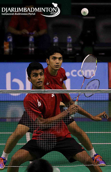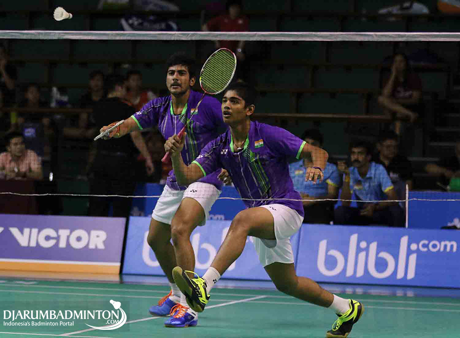 Sai Pavan Karri dan Srikrishna Sai Kumar Podile (India) Bersiap Mengembalikan Shuttlecock