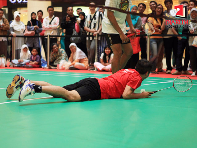 Gading Marten terjatuh usai gagal membalas pukulan kok lawan