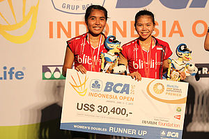 Jakarta, - Despite of playing in fornt of their thousands of fans, the Indonesian Women’s Doubles pair, Greysia Polii/Nitya Krishinda, still haven’t been able to deliver the fans a title at the Indonesia Open Super Series Premier 2015 which is also their first final, Sunday (7/6). They were ousted by the China’s superior pair, Tian Qing/Tan Jin Hua in a two game match.