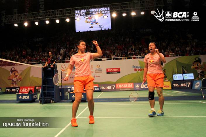 Jihnua/Qing didn’t forget to express their gratitude for the merry-making Indonesian supporters at the indoor sporting arena. It is because the crowds took side on the Chinese players as they cheered when they scored.