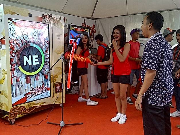 "Teriakkan Semangatmu" (shout your spirit) vending machine provided.