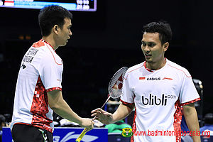 KUNSHAN - Tim Thomas Indonesia pastikan tiket ke final Piala Thomas 2016 di Kunshan Sport Centre, Tiongkok, Jumat (20/5). Adalah Angga Pratama/Ricky...