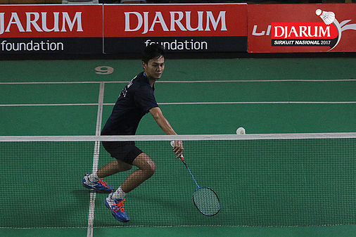 Imam mengawali aksinya lewat berduetnya bersama peraih medali emas Olimpiade 2016, Tontowi Ahmad di Lapangan Bulutangkis Kantor Kemenpora, Jumat (30/12). Keduanya menantang pasangan Taufik Hidayat dan Ricky Soebagja.