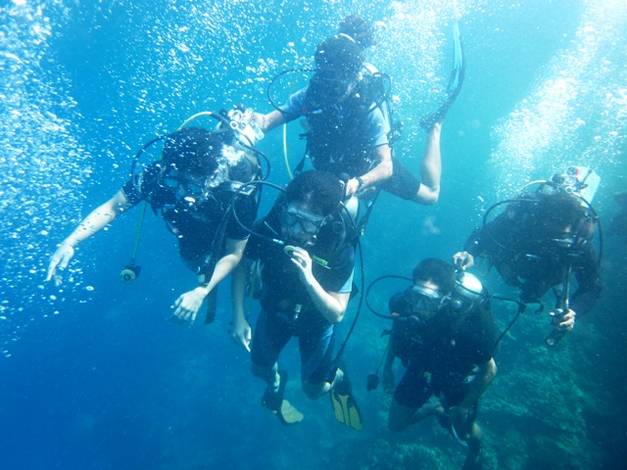 Sementara itu, Alrie Guna Dharma berkesempatan mencoba diving bersama dua rekannya di PB Guna Dharma, Rizko Azuro dan Wildan Atmaja.