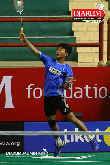 Adam Muchtar Hidayat (Pratama Badminton Academy, Kediri) bersiap melepaskan serangan
