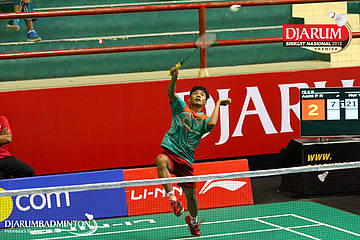 Mohammad Fino Romadhoni (FIFA BC) bersiap menyambut shuttlecock