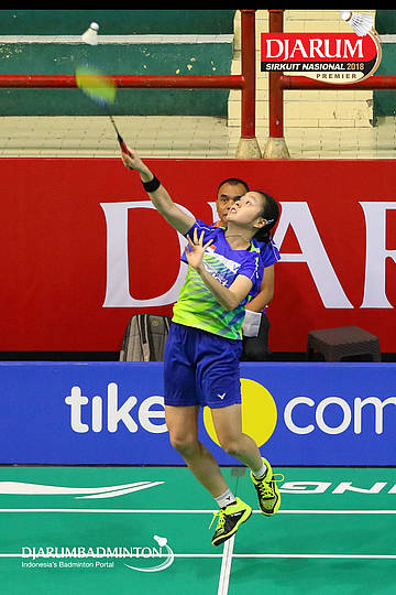 Michelle Gabriela (Exist, Jakarta) menyambut shuttlecock