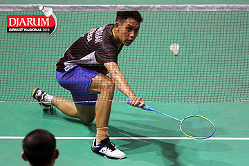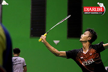 Erick Eriawan (Djarum Kudus) Mengembalikan Shuttlecock.