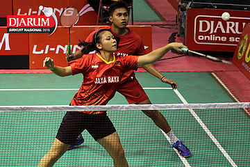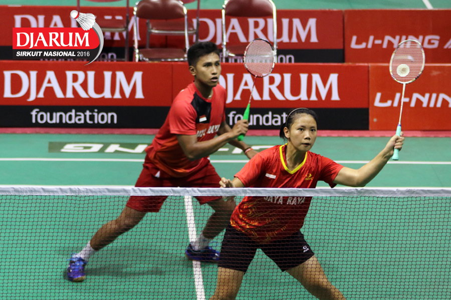 Rian Swastedian/Brigita Marcelia (Jaya Raya) Mengembalikan Shuttlecock.