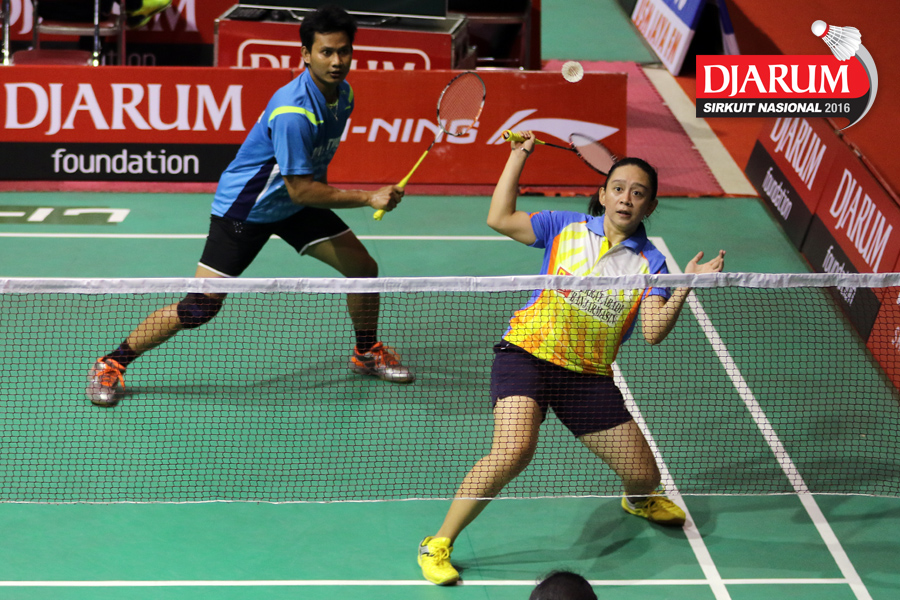 Didit Juang/Keshya Nurvita (Trikus Badminton/Berkat Abadi) Bersiap Menghadang Serangan.