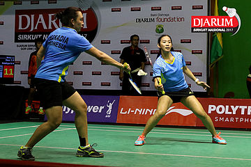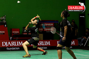 Devi Tika Permatasari/Keshya Nurvita Hanadia (Berkat Abadi) Mengembalikan Shuttlecock