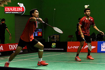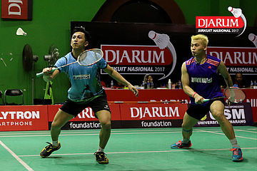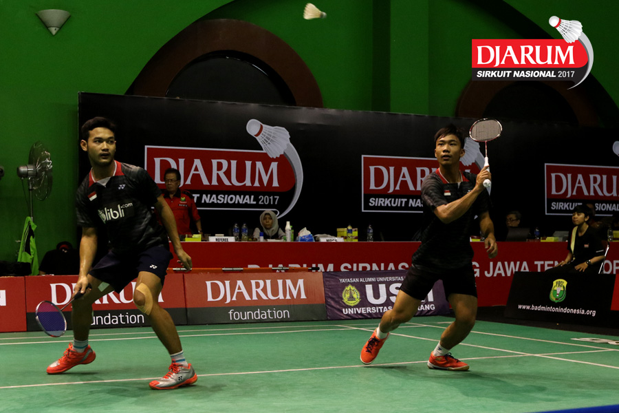 Muhammad Fachrikar Adma Parlindungan/Reza Dwicahya Purnama (Jaya Raya) Mengembalikan Shuttlecock