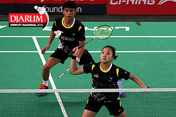 Haffiz Nur Adila/Mia Dian (Djarum Kudus) berusaha menggapai pengembalian