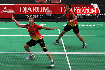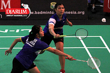 Dian Fitriani/Nadya Melati (Pertamina Fastron) menyambut serve