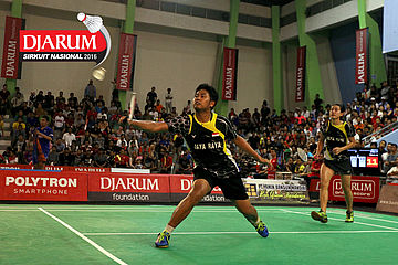 Haffiz Nur Adila/Pramudya Kusumawardana (Djarum Kudus) menyambut pengembalian