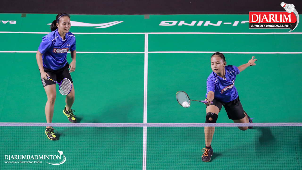 Kelly Larissa+Sintia Dewi Yuliani (PB Djarum, Kudus) menyambar pengembalian