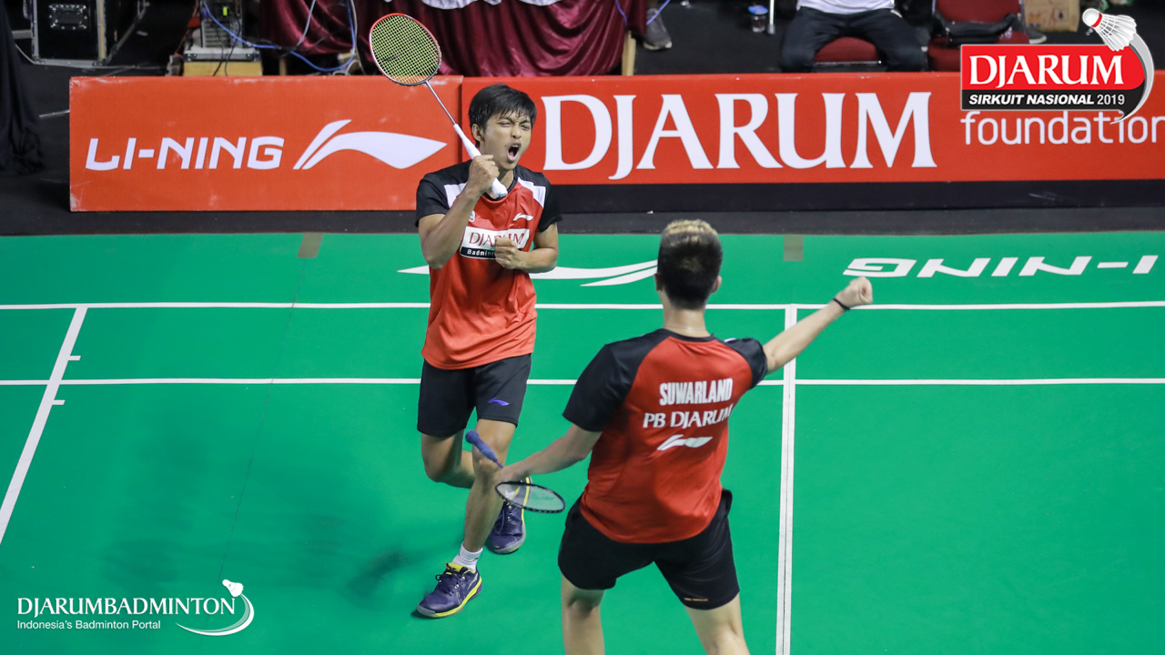 Selebrasi kemenangan Ivan Adi Cahyono+Vincentius Suwarland (PB Djarum, Kudus)