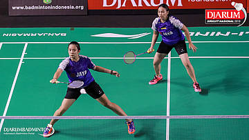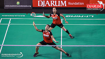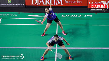 Ayu Gary Luna Maharani+Rosyita Eka Putri Sari (PB Djarum, Kudus) bersiap menyambar pengembalian