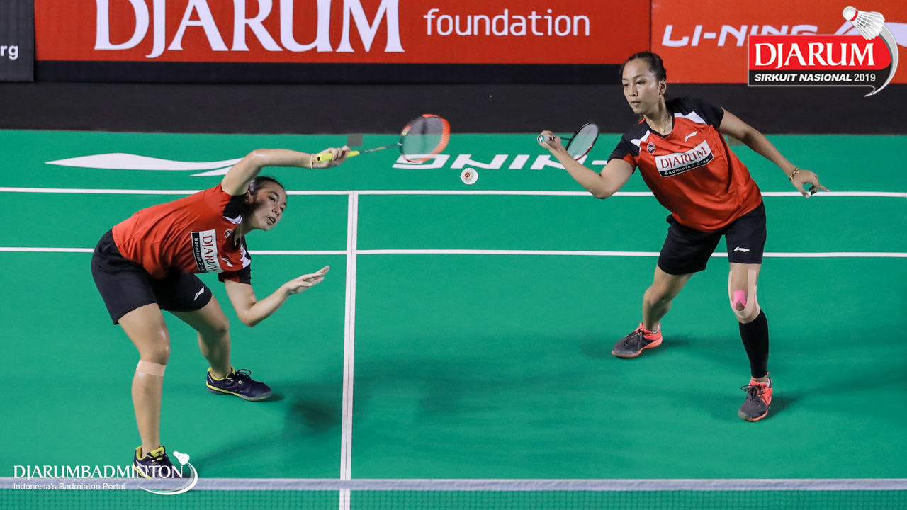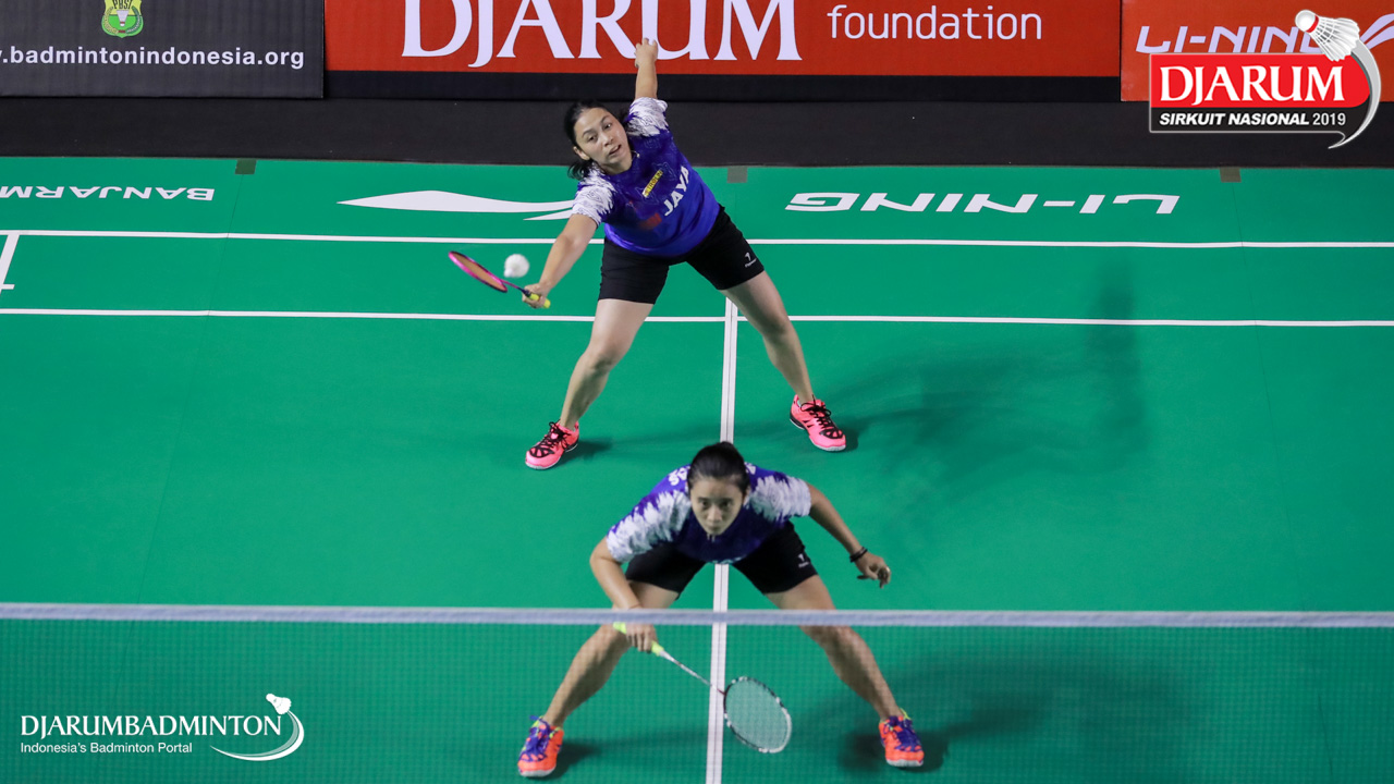 Anggia Shitta Awanda+Pia Zebadiah Bernadet (Jaya Raya Jakarta) berusaha menyambut serangan