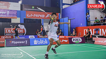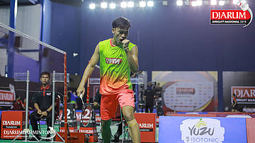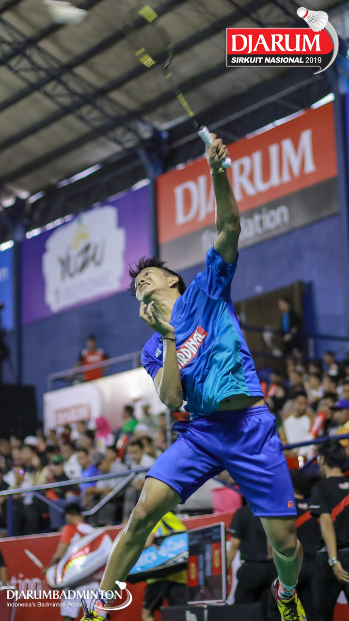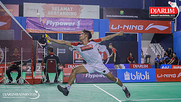 Bagas Kristianto Nugroho (PB Djarum, Kudus) menyambar serangan