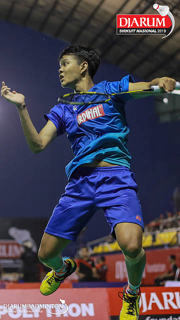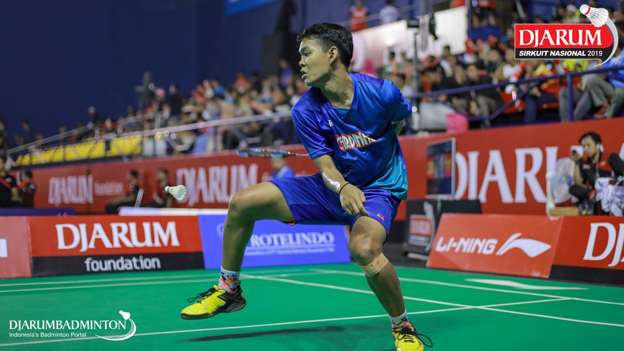 Bagas Kristianto Nugroho (PB Djarum, Kudus) mengembalikan shuttlecock