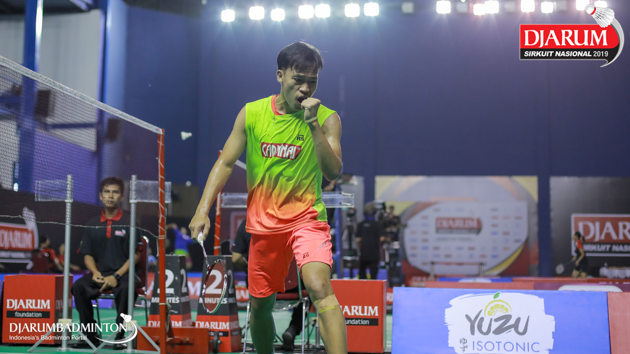 Ekspresi kemenangan Yudha Putra Pramudia (Mutiara Cardinal, Bandung)
