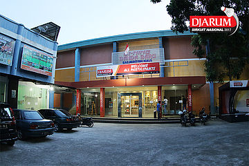 Seorang Petugas Memasang Atribut Djarum Sirkuit Nasional Li-Ning Kep. Riau Open 2017