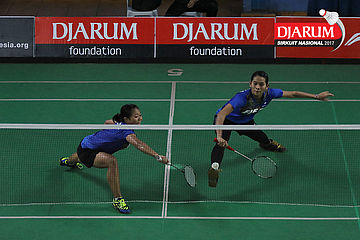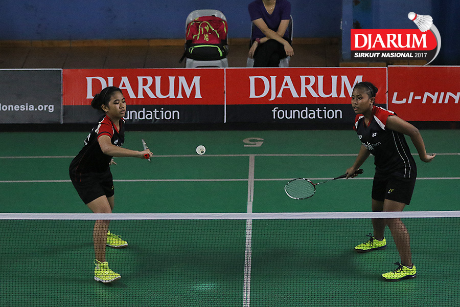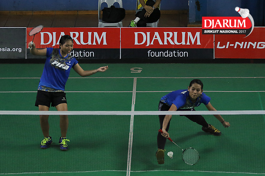 Aisyah Nuraini/Annisa Mubarokah (FIFA Badminton Club Sidoarjo) Bersiap Menyambar Pengembalian