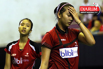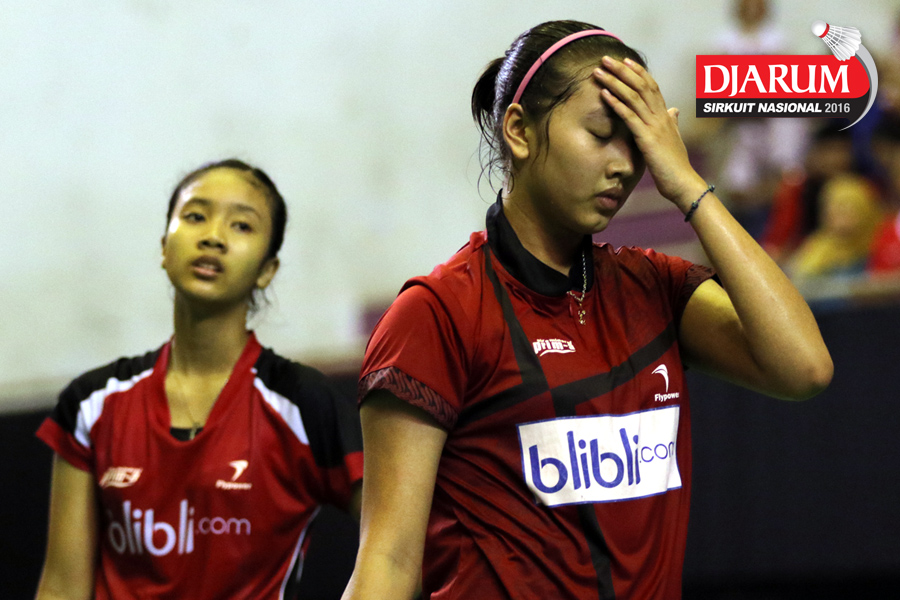 Ekspresi kekecewaan Febby Valencia/Metya Inayah (Djarum Kudus)