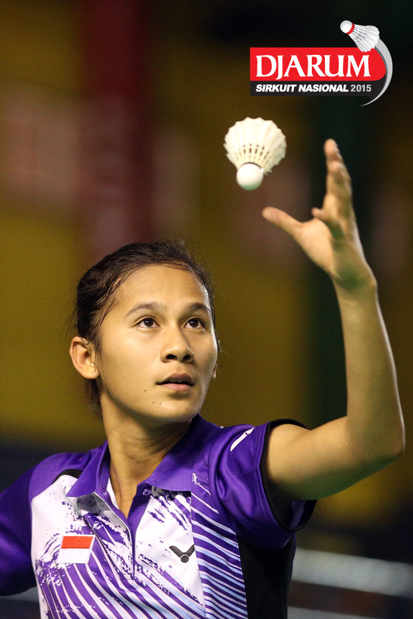 Febby Angguni (Tjakrindo Masters) bersiap menyambut pengembalian dari Asifa Nur Farisma (Semen Gresik).