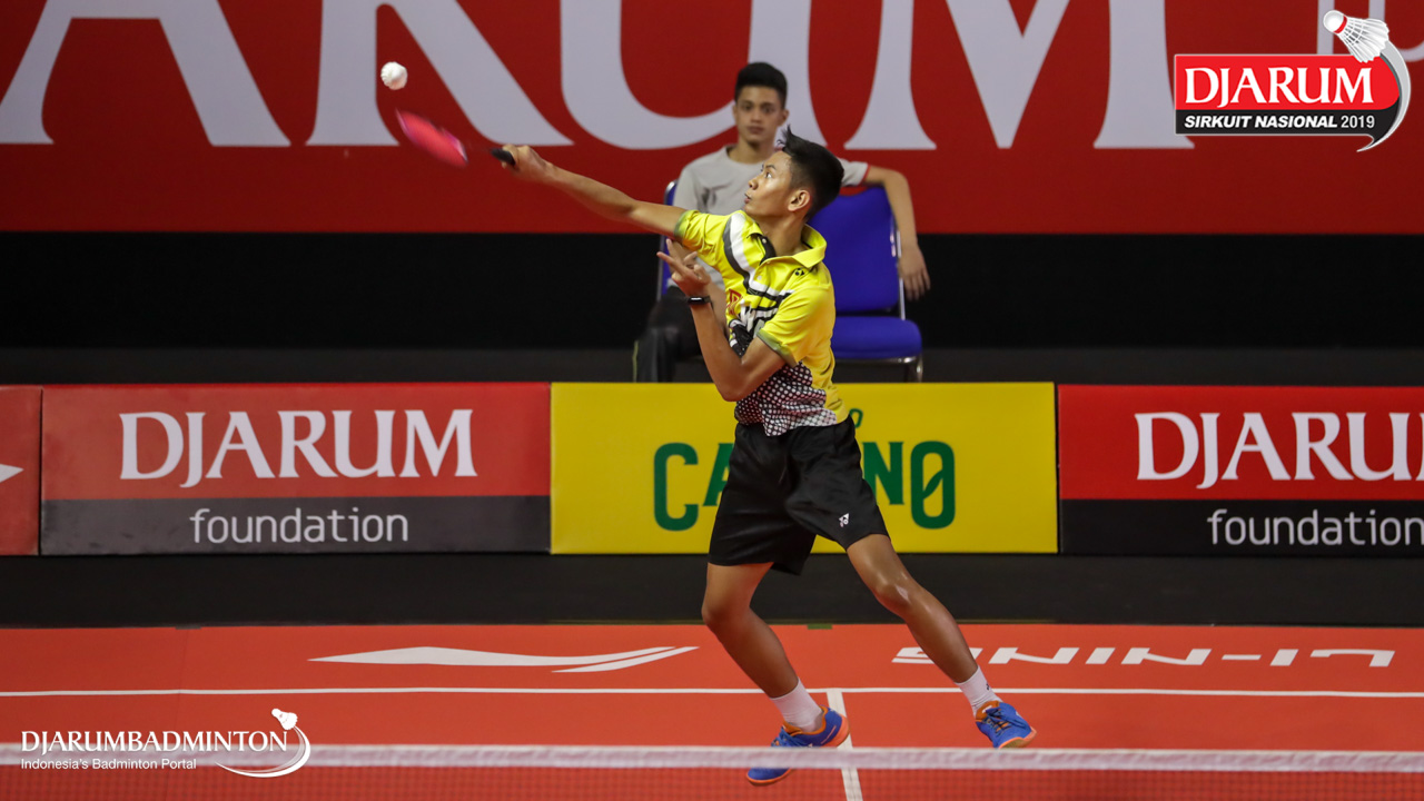 Abdul Barry Worontika (PB. Warna Agung Perkasa, Mataram) menyambut shuttlecock