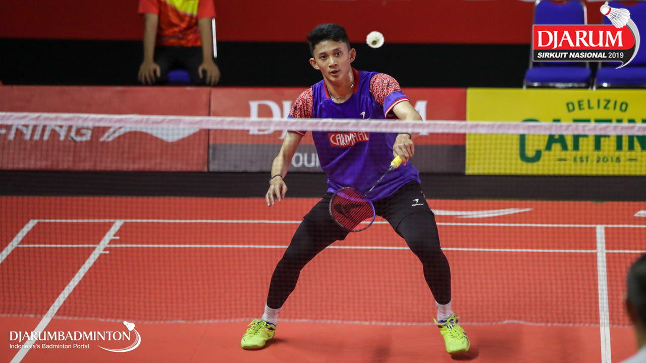 Wahyu Triansyah (Bank Sumsel Babel, Plb) bersiap menyambut shuttlecock
