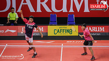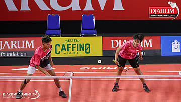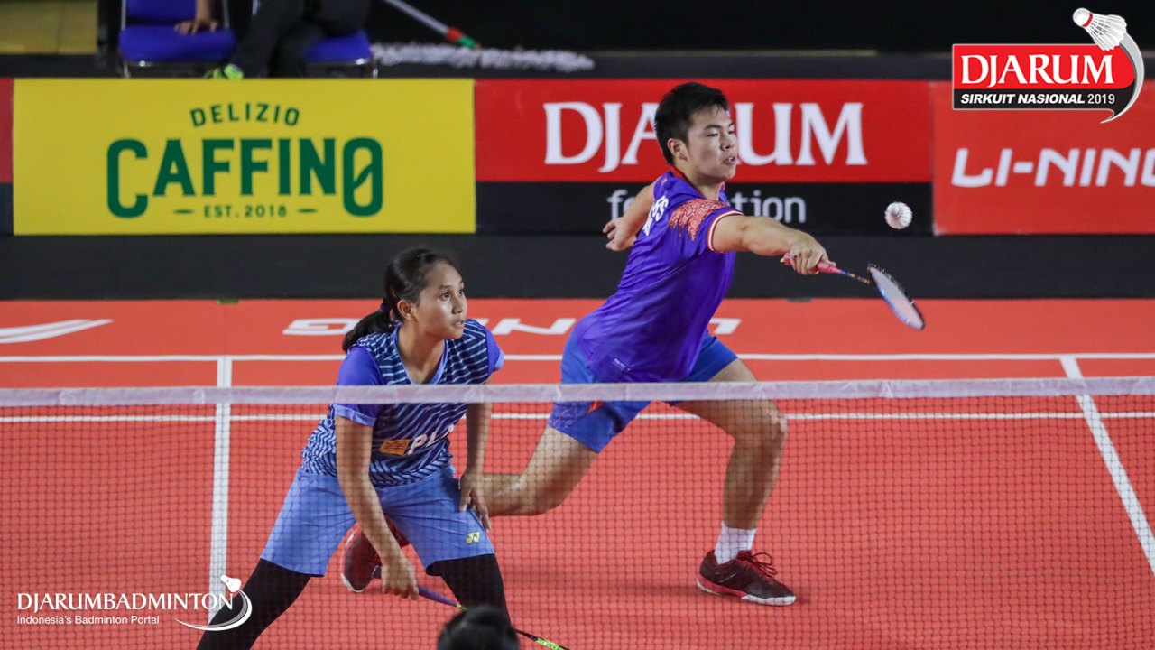 Bryan Sydney Elohim+Nur Sakinah Aulia (Tangkas , Jaksel+Sangkuriang Graha Sarana PLN Bandung) bersiap menyambut shuttlecock