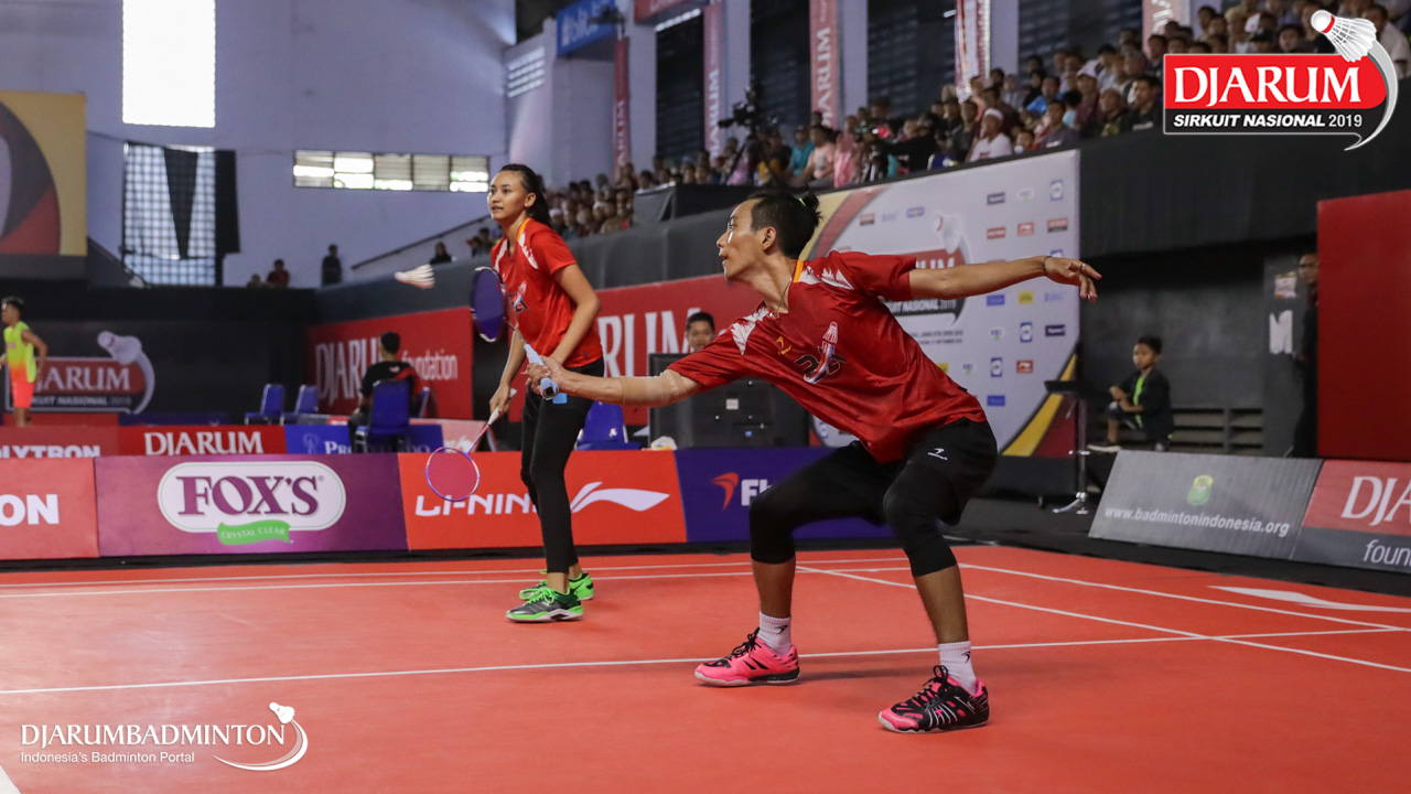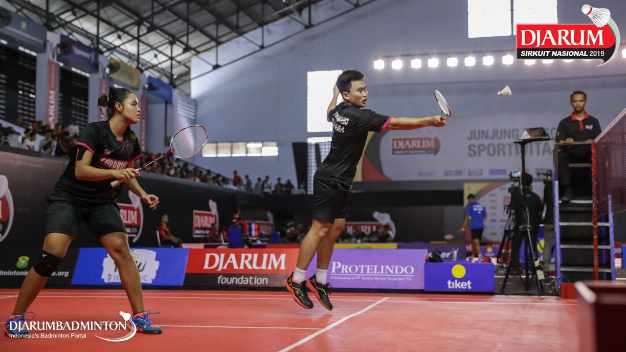Reinard Dhanriano+Rayhan Vania Salsabila (Mutiara Cardinal, Bandung) bersiap menahan serangan