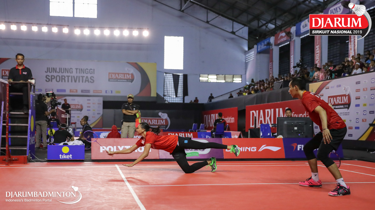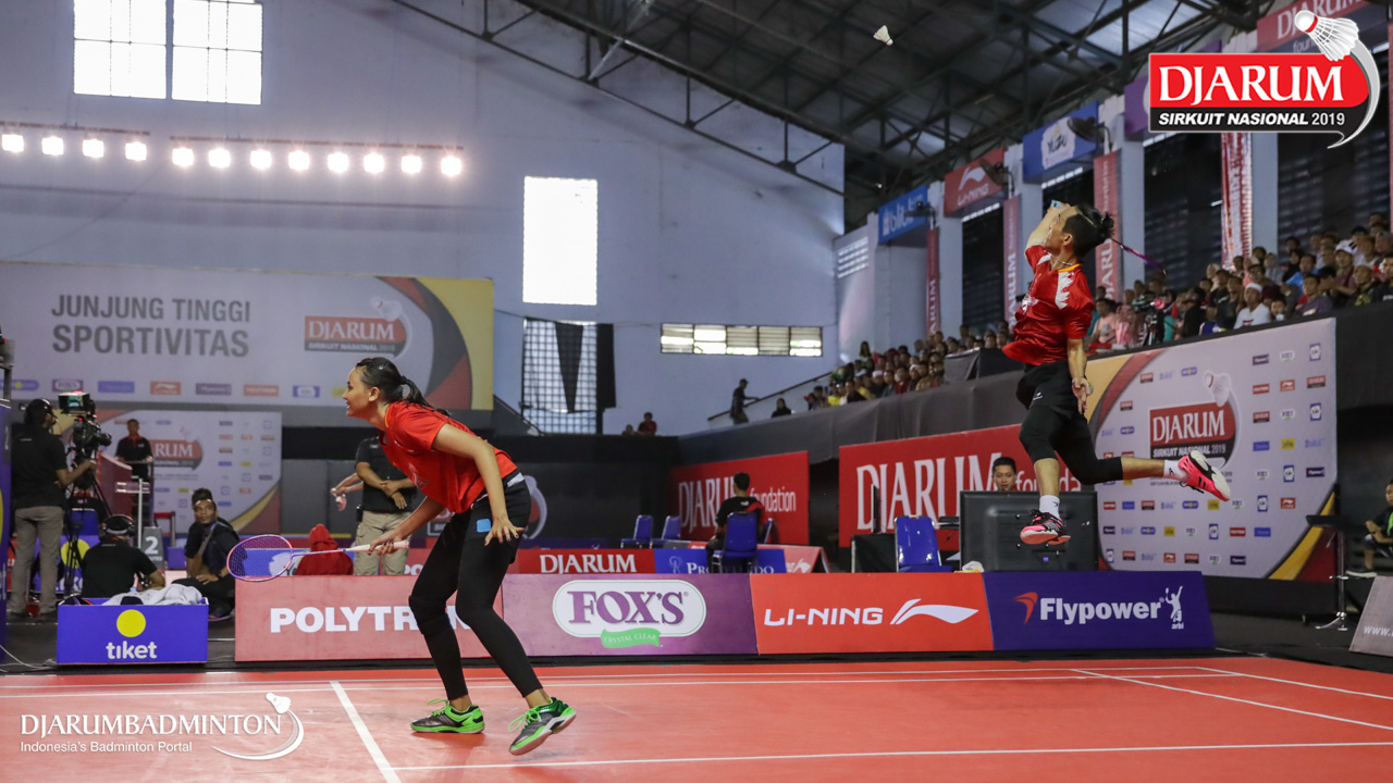Agripina Primarahmanto Putera+Meirisa Cindy Sahputri (Berkat Abadi, Banjar) mengembalikan shuttlecock