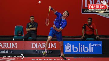 Dominic Jan Tripet (Swiszterland) menyambut shuttlecock