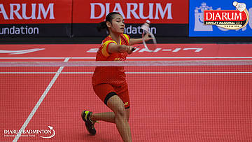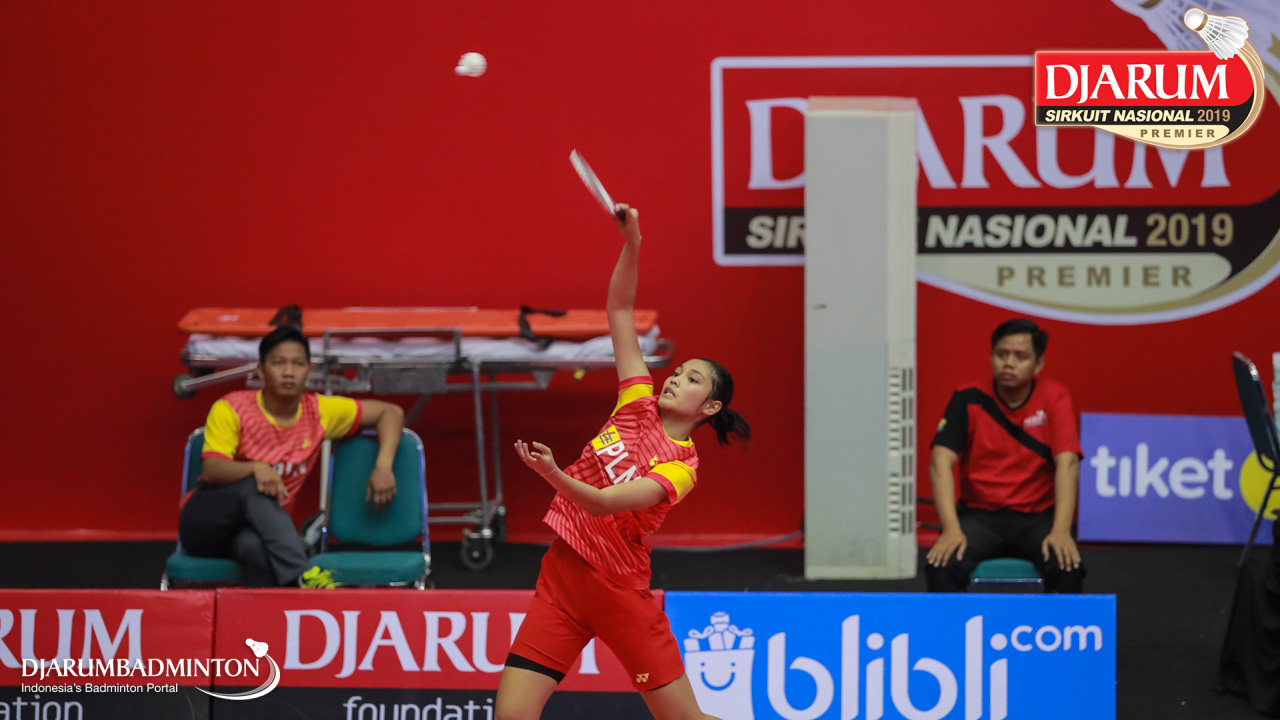 Rizma Anestasy Violeta (Sangkuriang Graha Sarana PLN Bandung) mengembalikan shuttlecock