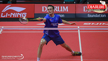 Dominic Jan Tripet (Swiszterland) mengembalikan shuttlecock