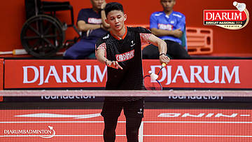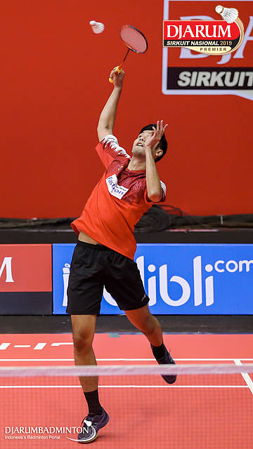 Alberto Alfin Yulianto (Pelatnas) mengembalikan shuttlecock