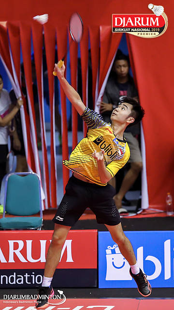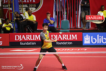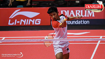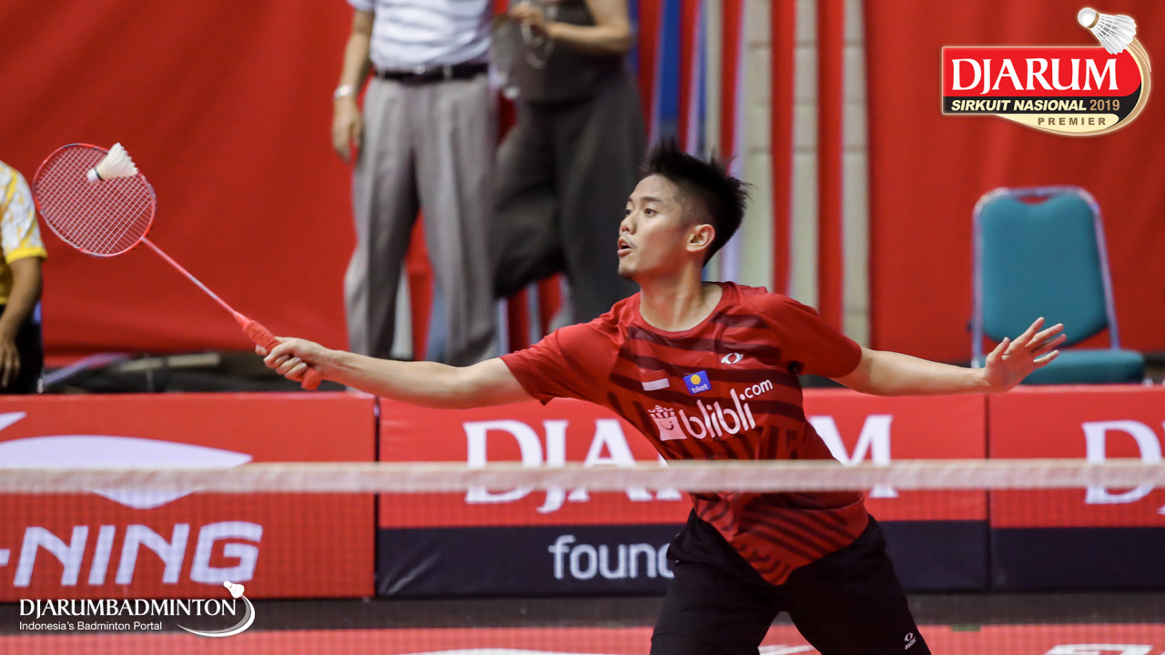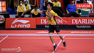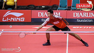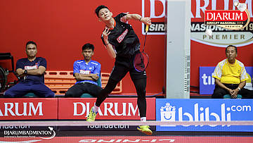 Bagas Kristianto Nugroho (PB Djarum, Kudus) menyambut serangan