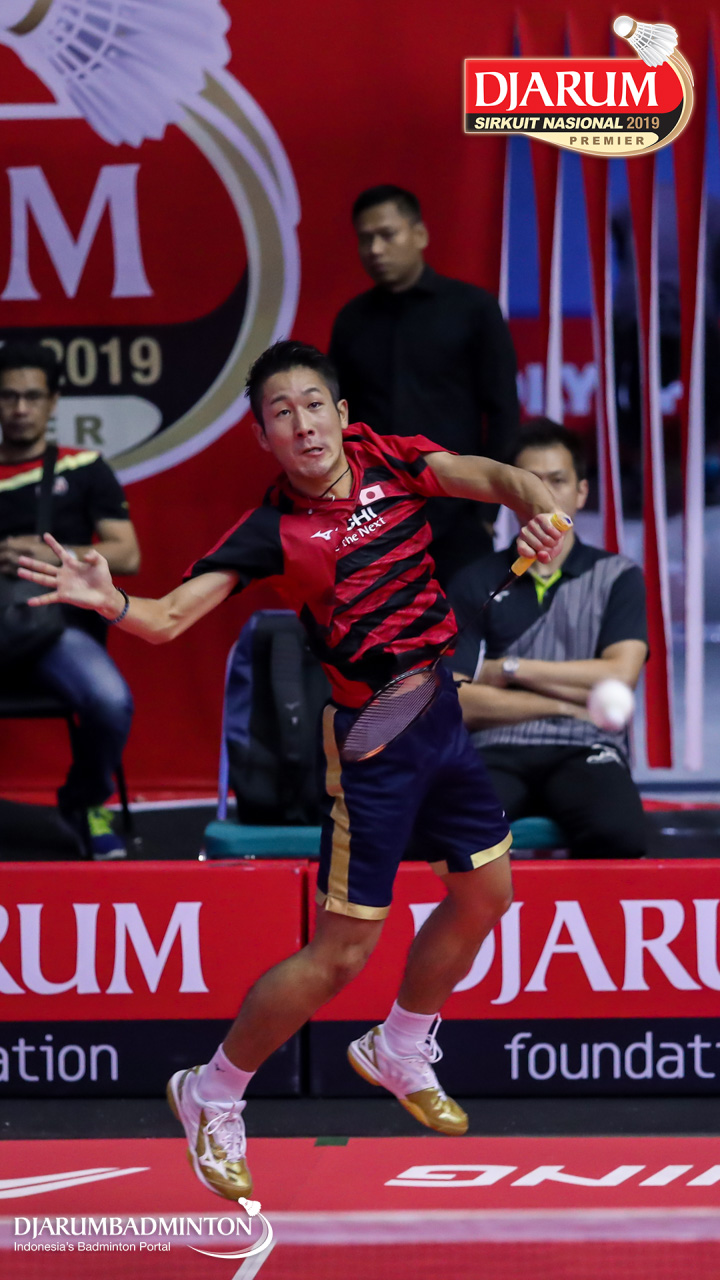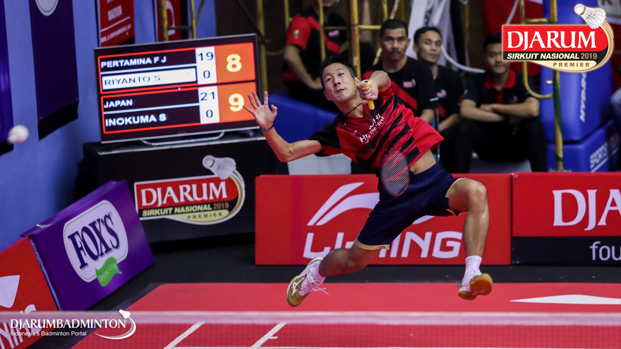 Inokuma Shintaro (Japan) mengembalikan shuttlecock
