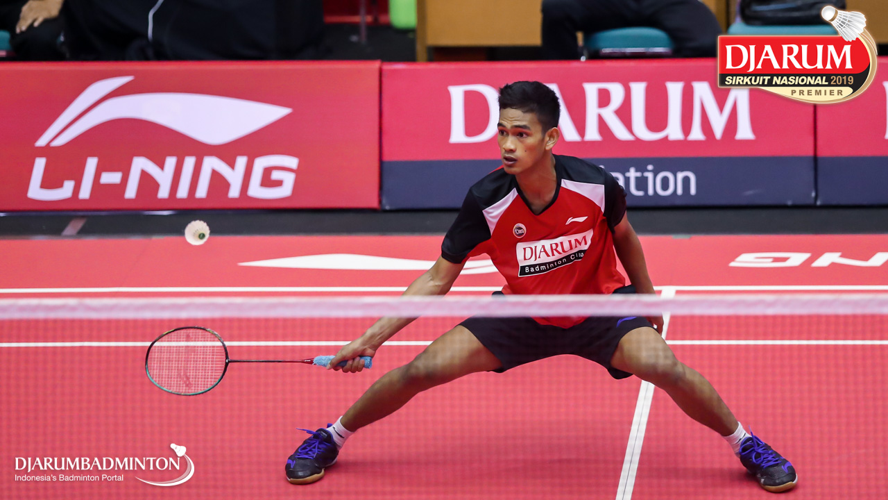 Alvi Wijaya Chairullah (Mutiara Cardinal, Bandung) bersiap menyambut shuttlecock
