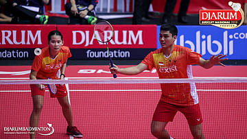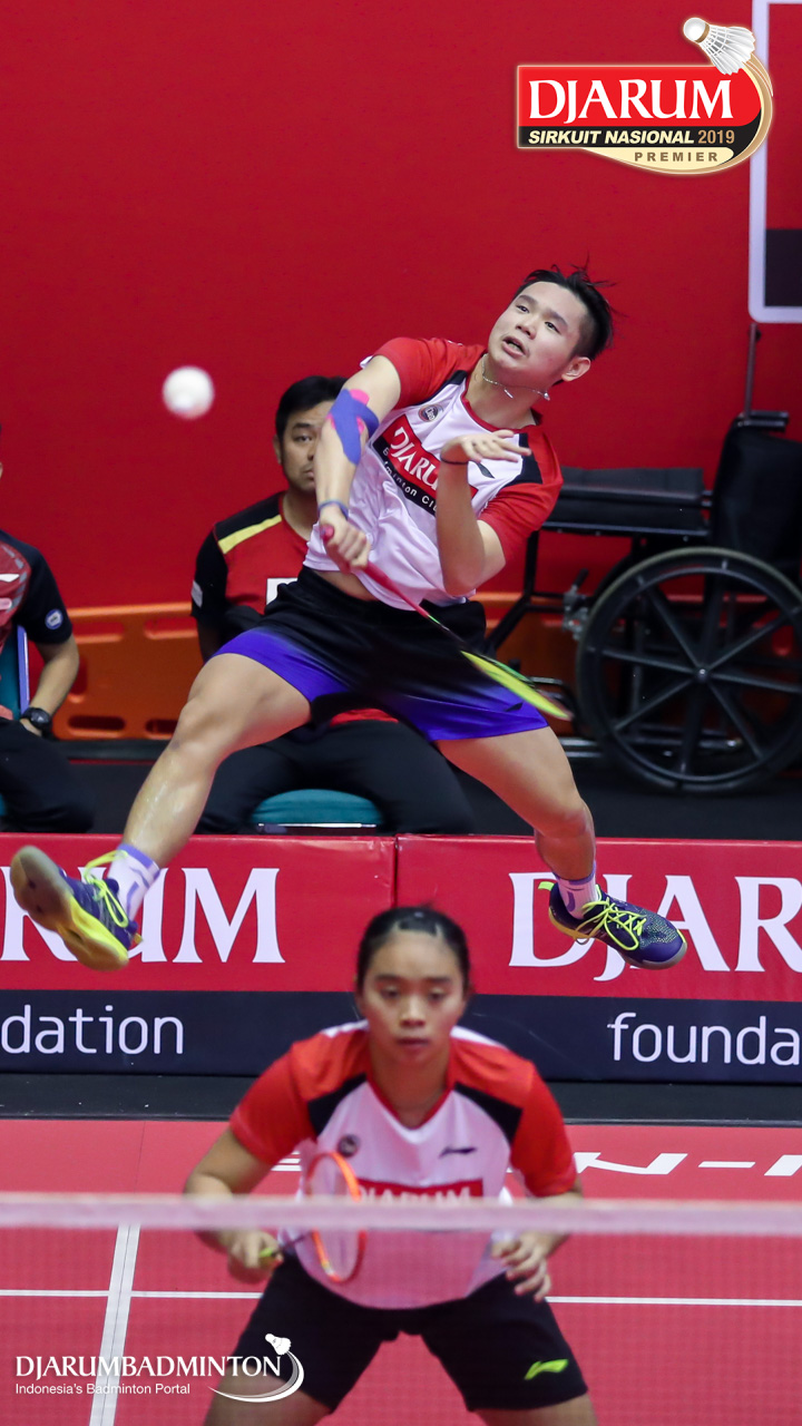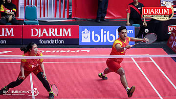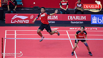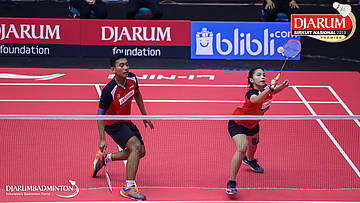 Alan Darmasaputra Kristanto+Berliona Alma Pradisa (PB Djarum, Kudus) melepaskan serangan