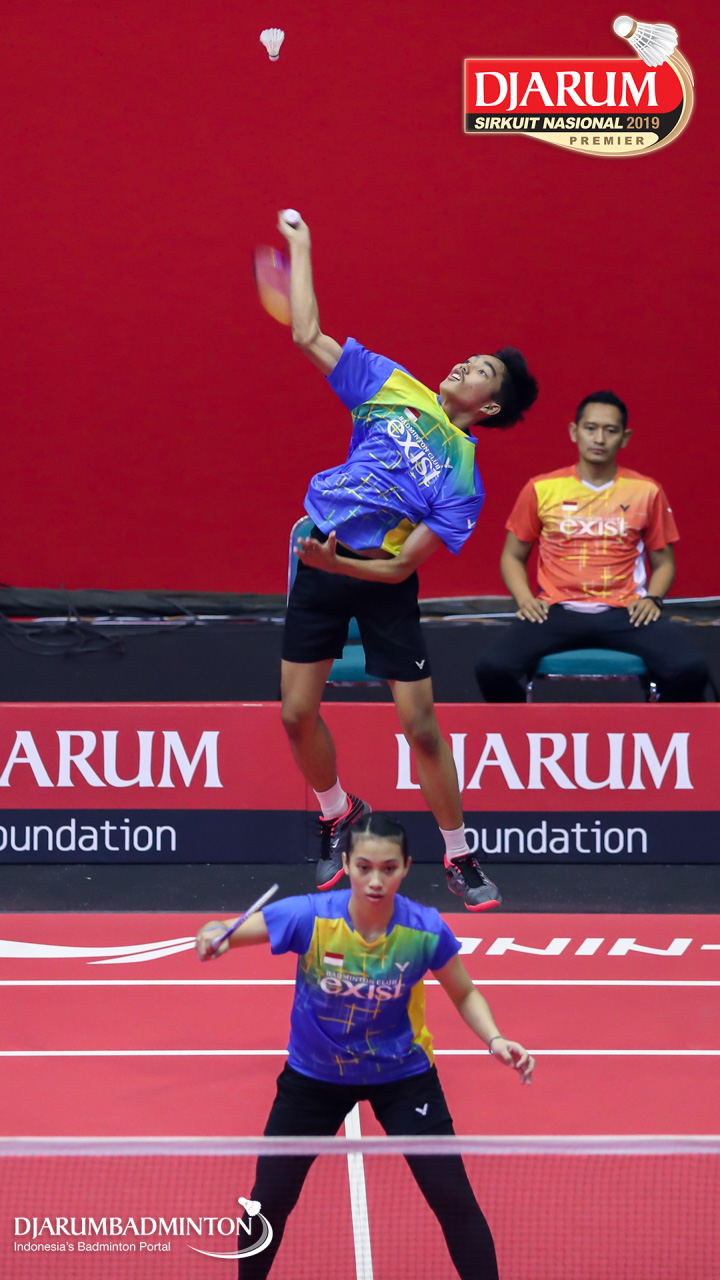 Arya Adi Saputra+Putri Larasati (Exist Badminton Club) melepaskan serangan