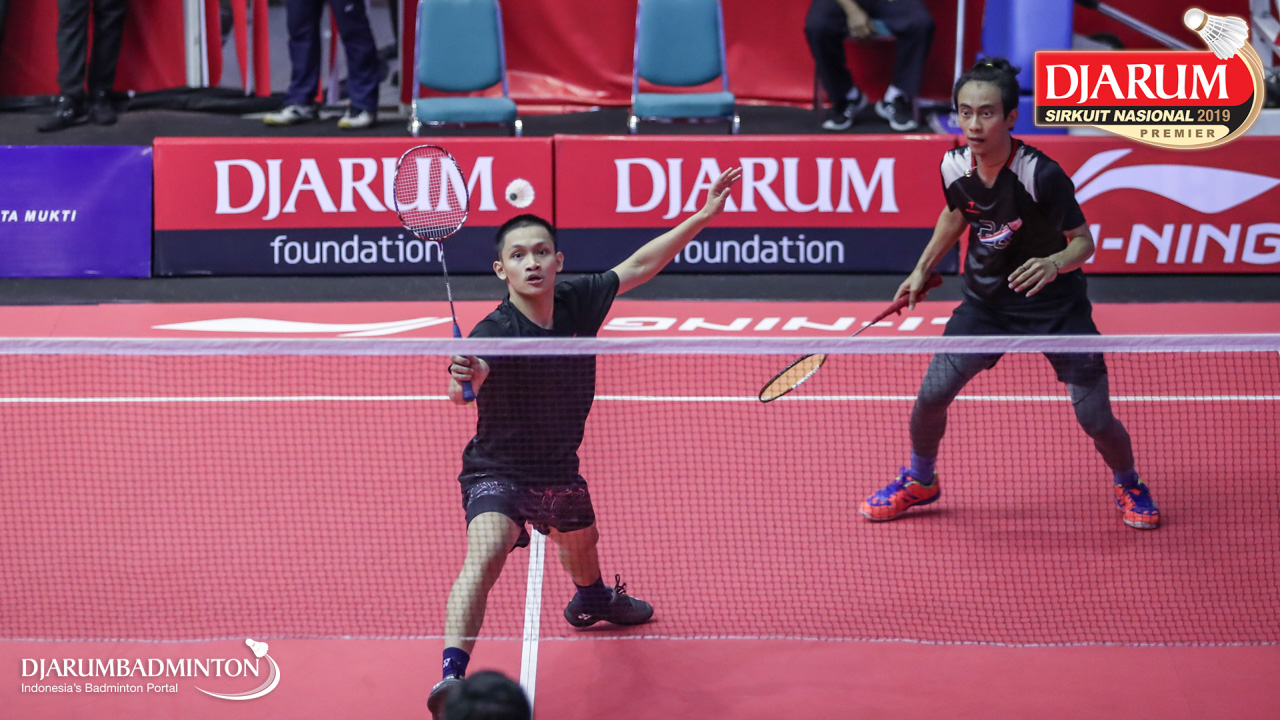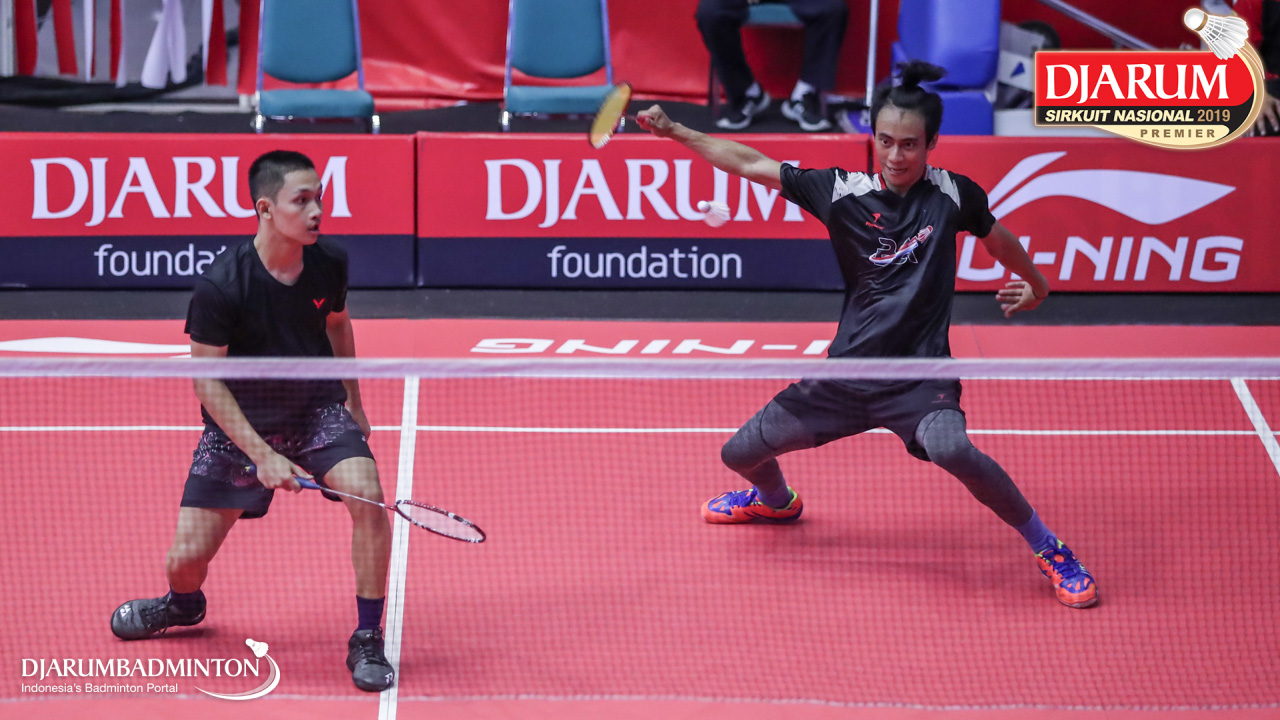 Agripina Primarahmanto Putera+Muhammad Juan Elgiffani (Berkat Abadi, Banjar+PB Victory Bogor, Jaktim) berusaha melakukan pertahanan