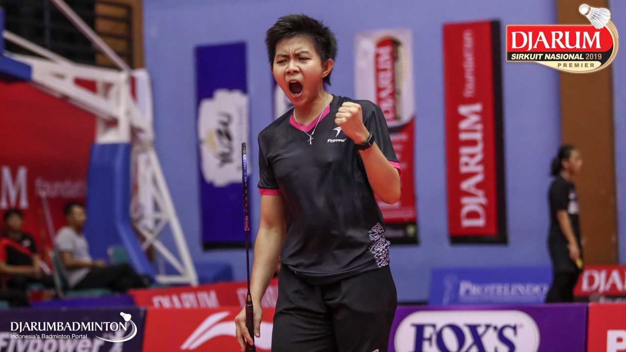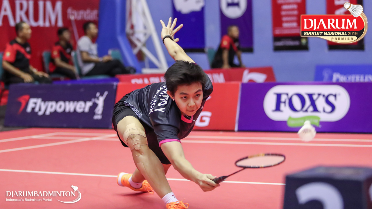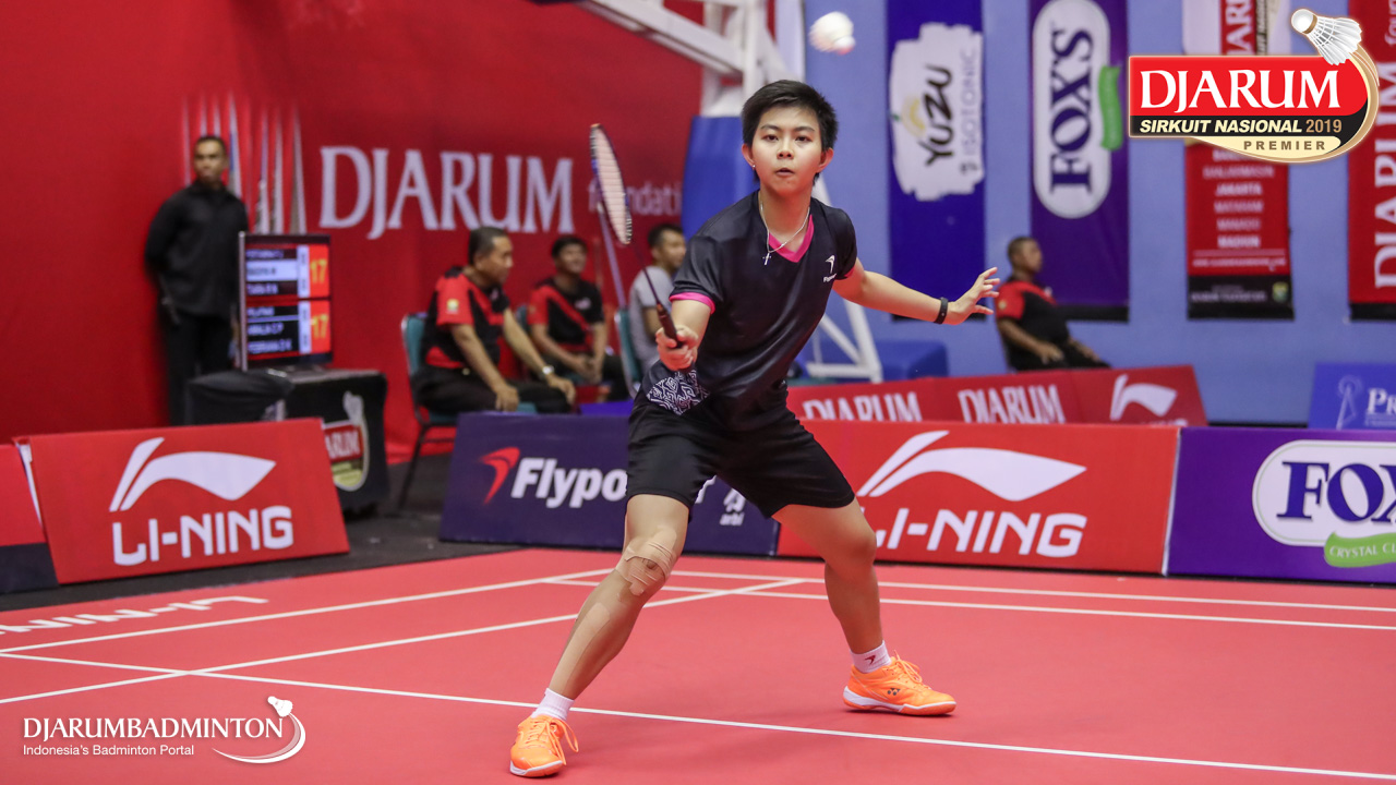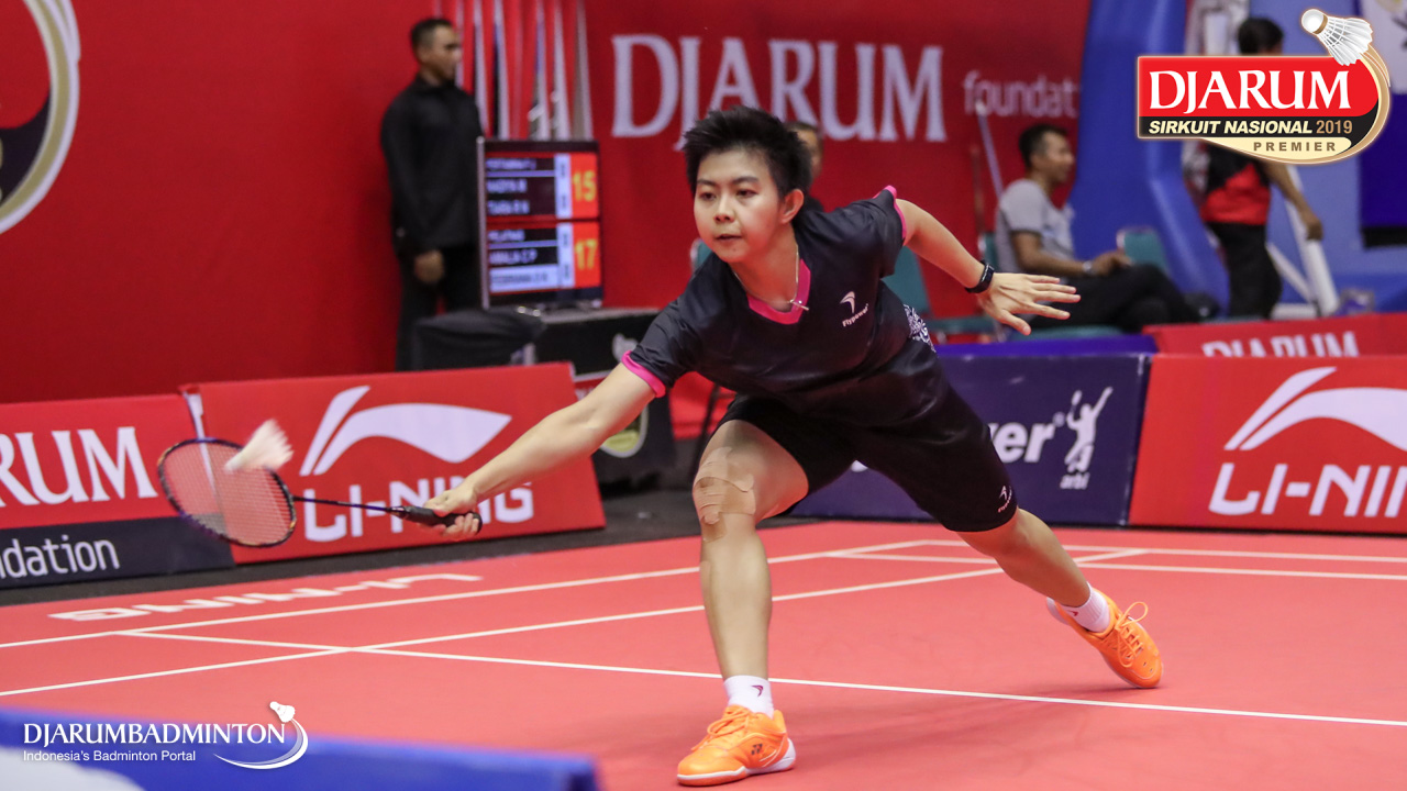 Susanto Yulia Yosephine (Shamrock, Medan) menyambut shuttlecock