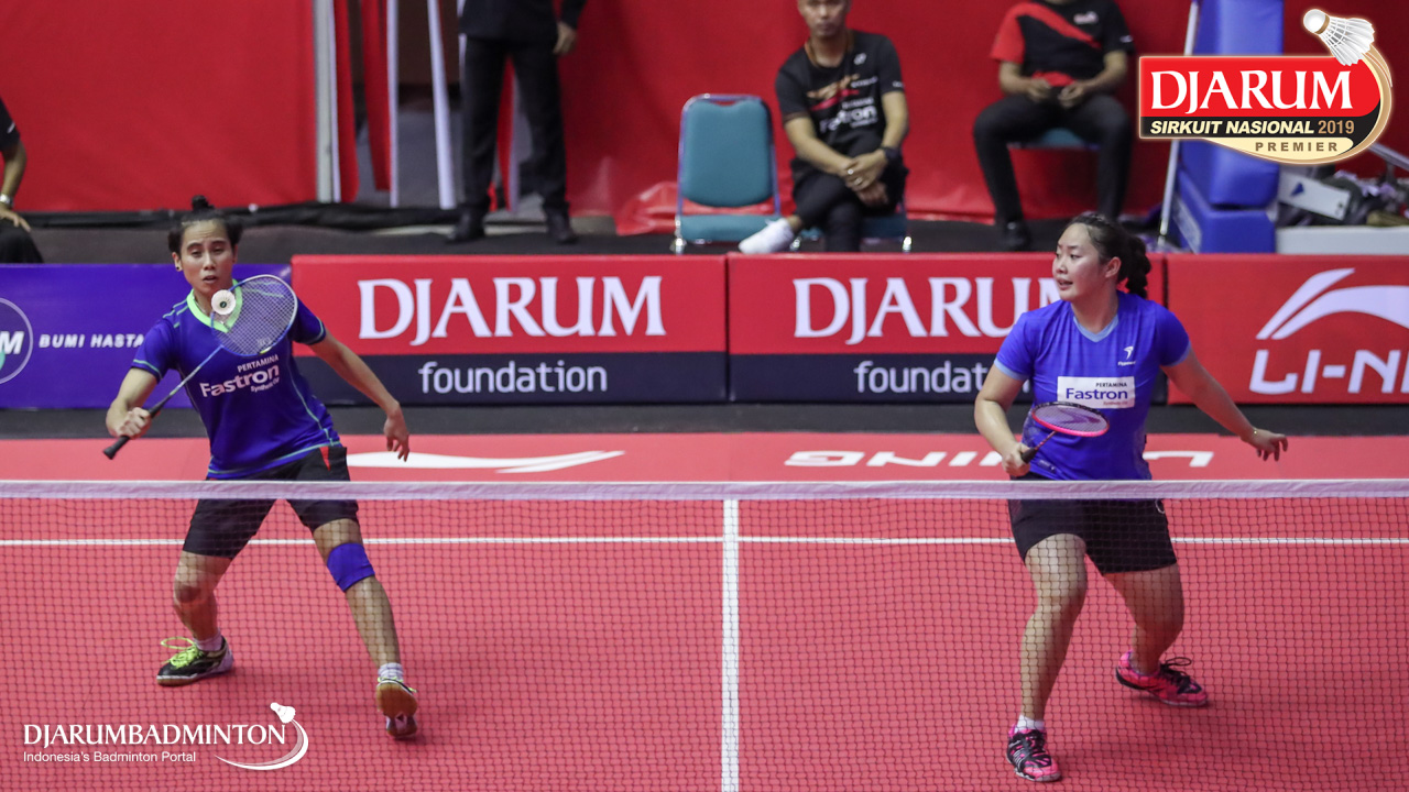 Nadiya Melati+Tiara Rosalia Nuraidah (Pertamina Fastron, Jakut) bersiap menyambut shuttlecock