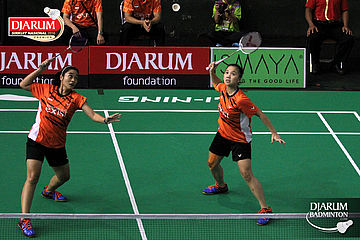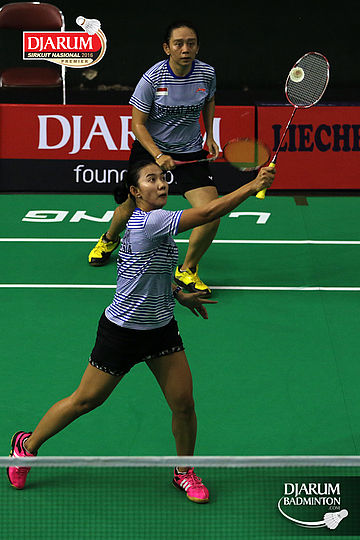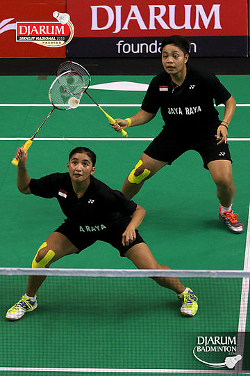 Apriyani Rahayu/Jauza Fadhila (Jaya Raya) menghadang serangan